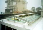- Tensioning fabric tent covered by aluminium lateral guiding with stainless steel wire and bearing.